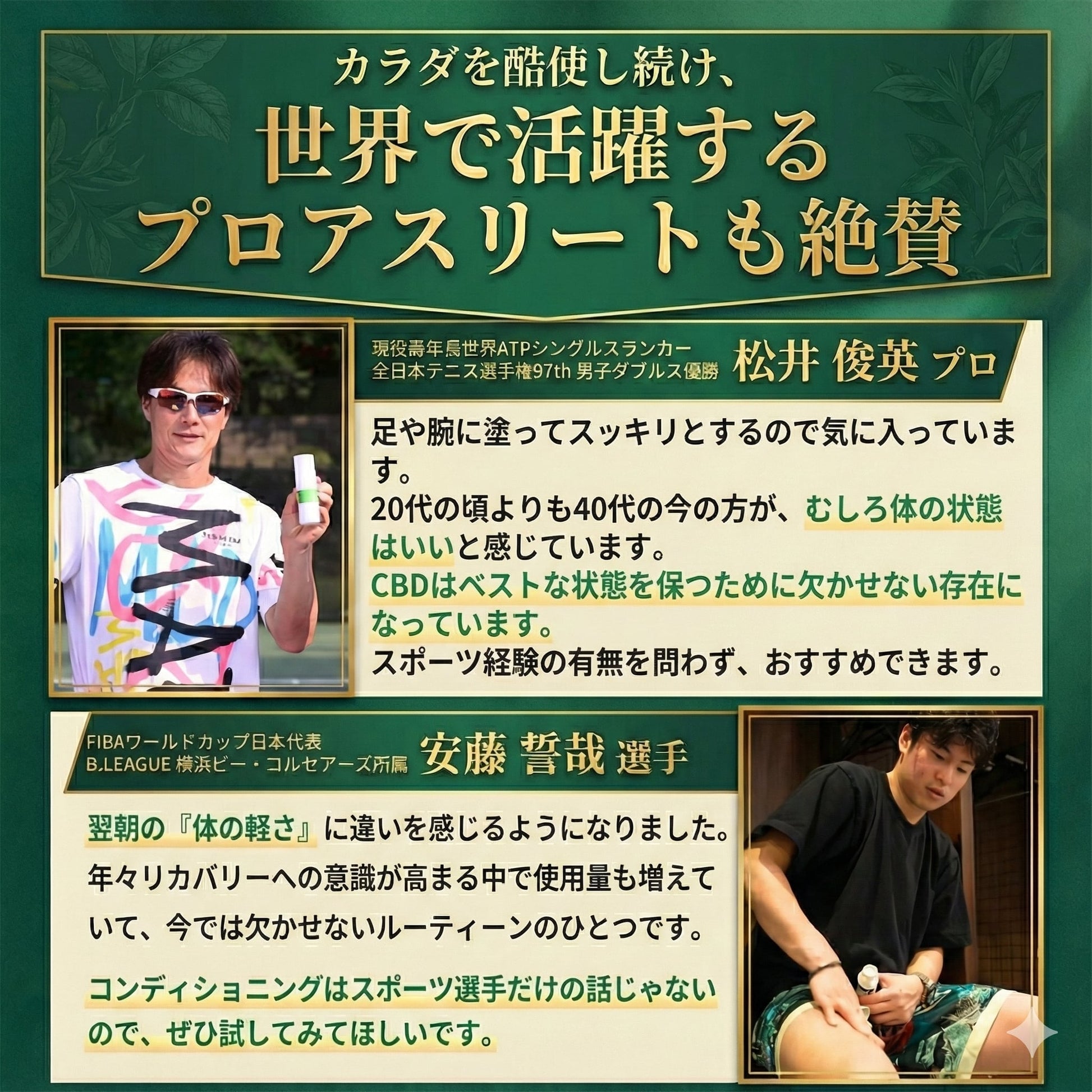 本製品は多くのアスリートの方にもご愛用いただいています。